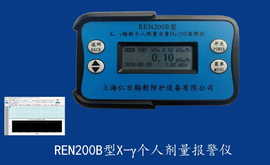 REN200 個(gè)人輻射監(jiān)測(cè)儀 REN200型X、γ個(gè)人劑量報(bào)警儀(又叫X、γ輻射個(gè)人劑量當(dāng)量HP(10)監(jiān)測(cè)儀)內(nèi)置高靈敏度蓋格計(jì)數(shù)管為探測(cè)器,主要用來監(jiān)測(cè)各種放射性工作場(chǎng)所的X、γ以及硬β射線的輻射,具有響應(yīng)快,測(cè)量范圍寬的特點(diǎn)。能顯示工作場(chǎng)所的劑量當(dāng)量率和累積劑量,更換電池時(shí),日期及累積數(shù)據(jù)能永久保存。可選配RenRiPersonal個(gè)人劑量管理軟件,該軟件可存儲(chǔ)多個(gè)人的歷史數(shù)據(jù),能記錄日累積、月累積、年累積、輻照時(shí)長(zhǎng)、計(jì)算平均劑量率、扣除或不扣除本底輻射,且以文字和圖譜的方式展現(xiàn)數(shù)據(jù)。廣泛應(yīng)用于核電站、加速器、鋼鐵、化工、同位素應(yīng)用、醫(yī)院、工業(yè)X、γ無損探傷、放射醫(yī)療、鈷源治療、γ輻照、放射性實(shí)驗(yàn)室、核設(shè)施周圍環(huán)境監(jiān)測(cè)